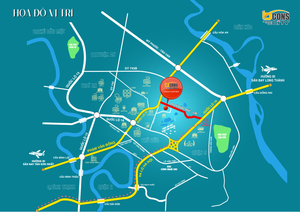 Bcons City -Tháp Green Diamond tọa lạc tại mặt tiền đường Thống Nhất, phường Dĩ An, TP HCM. Nằm ngay vị trí có khả năng kết nối siêu thuận tiện, đảm bảo đầy đủ cả 3 yếu tố “Nhất cận thị, Nhị cận giang, Tam cận lộ”.