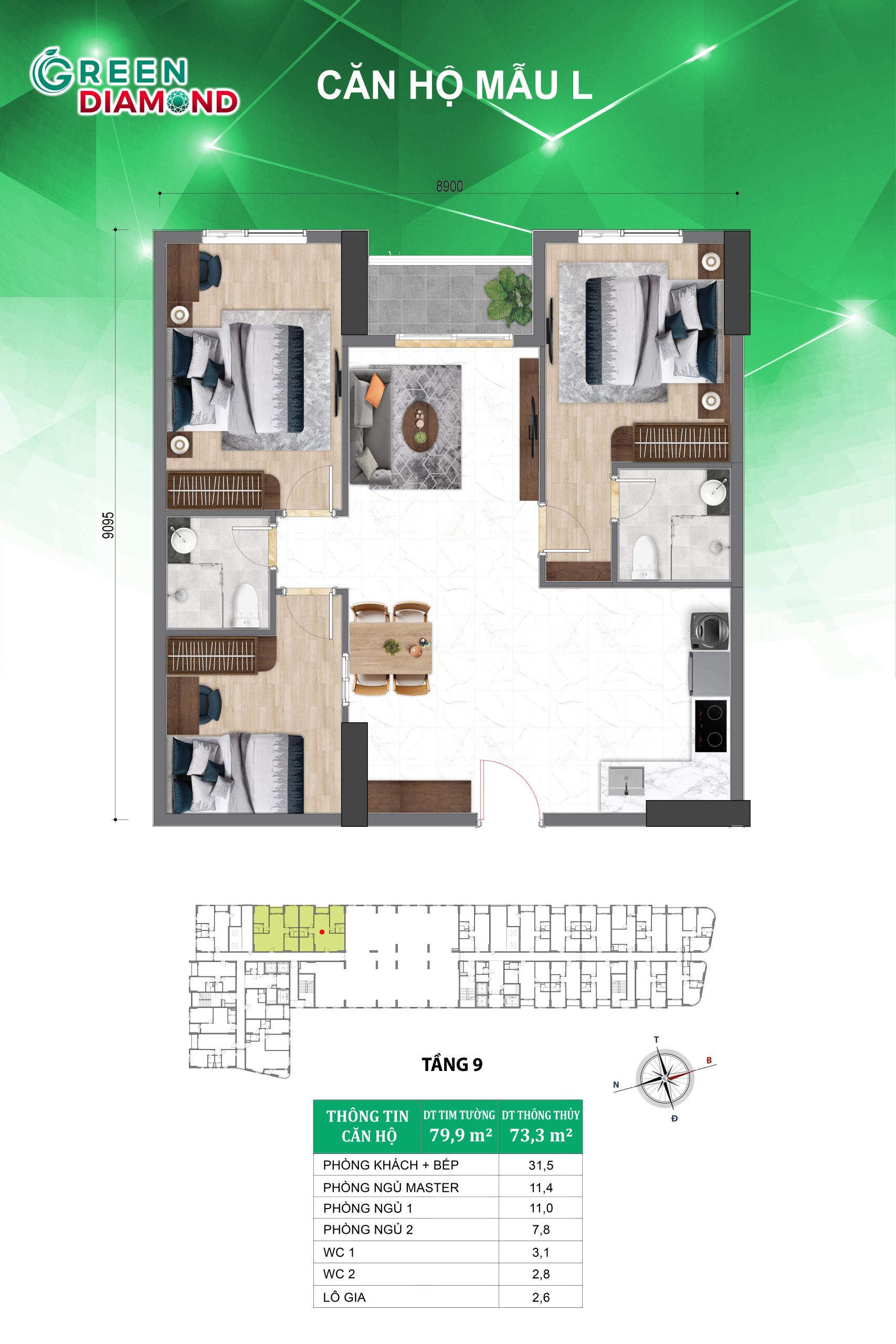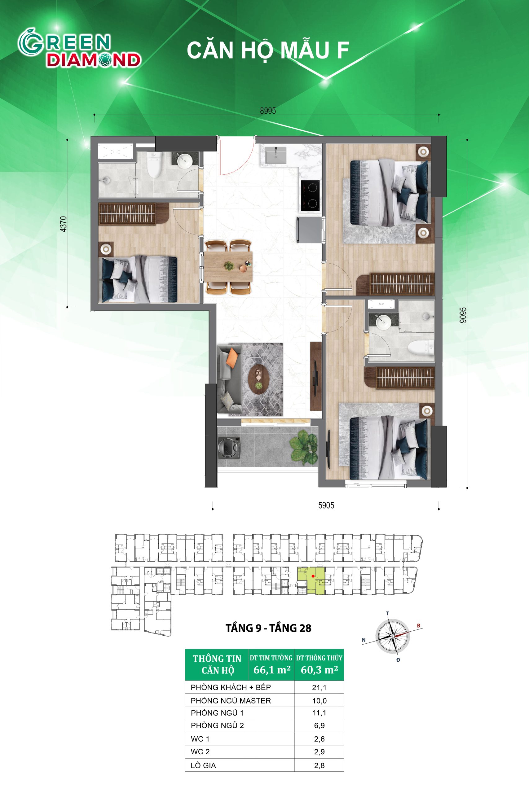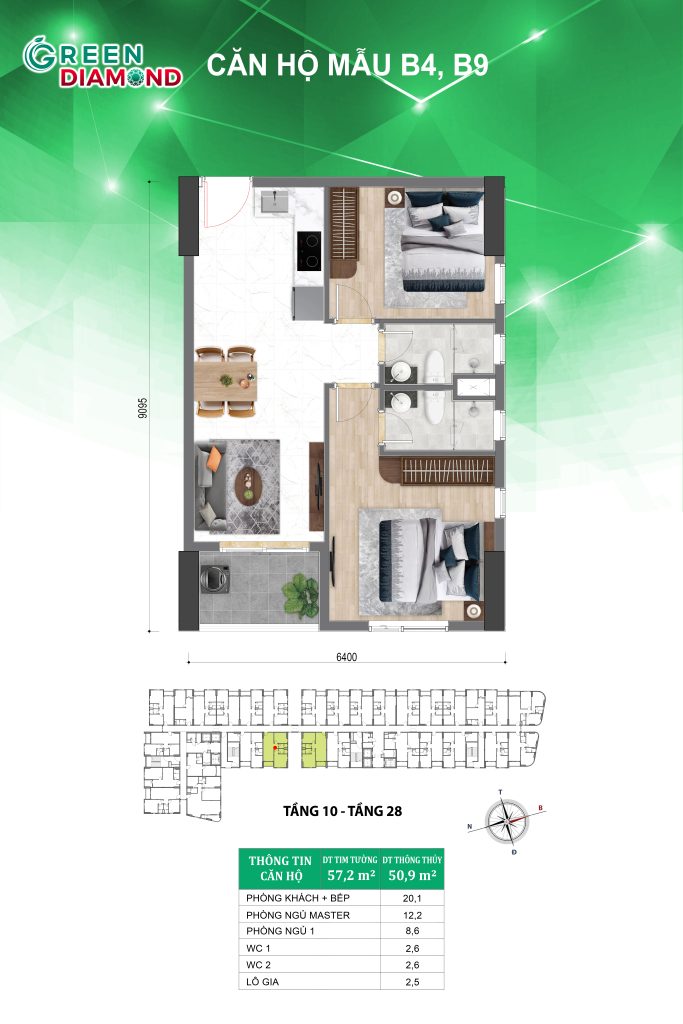 Bcons Green Diamond sẽ có thiết kế căn hộ đặc biệt nhất, chưa từng có trong thiết kế của CĐT từ trước đến nay , tuy nhiên tiêu chuẩn bàn giao sẽ được nâng cấp cùng với Bcons City. Khách hàng có sự lựa chọn căn hộ với loại diện tích từ :